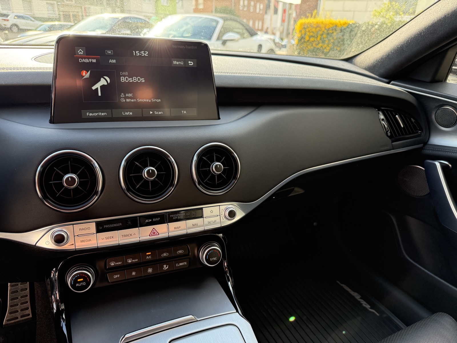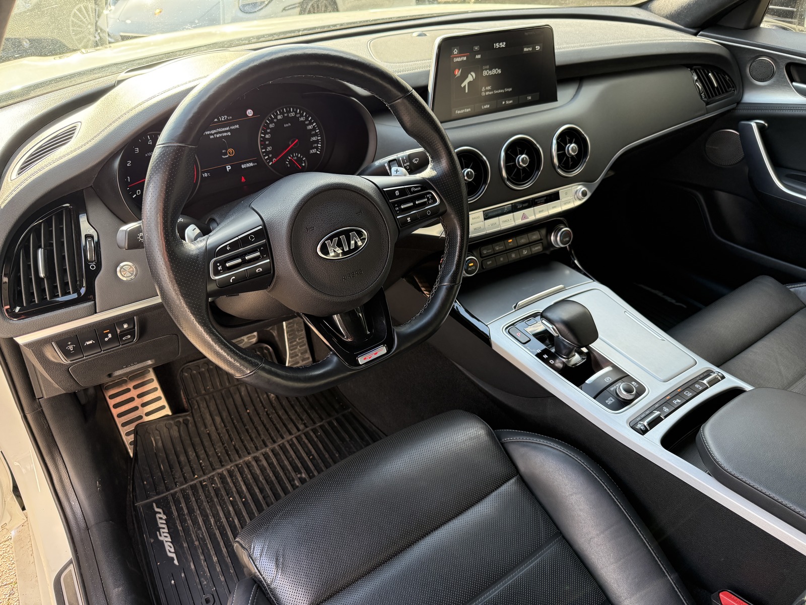 Sonderausstattung: Schiebe-/Hebedach elektrisch (Glas), Sonderlackierung Snow White Pearl Weitere Ausstattung: Adaptive Geschwindigkeits-Regelanlage mit Stop&Go-Funktion, Airbag Beifahrerseite abschaltbar, Airbag Fahrer-/Beifahrerseite, Aktive Motorhaube, Aktives Bremslicht (ESS), Audio-Navigationssystem KIA (8 Zoll), Audiobedienung am Lenkrad, Ausstattung GT, Außenspiegel elektr. anklappbar, Außenspiegel elektr. verstell- und heizbar, beide, Außenspiegel mit Abblendautomatik, Außenspiegel verchromt, Bi-LED-Scheinwerfer mit aktivem Kurvenlicht, Bremsanlage: Brembo, Bremsassistent, DAB-Tuner (Radioempfang digital), Einparkhilfe vorn und hinten, Einschaltautomatik für Fahrlicht, Fahrassistenz-System: Antriebsmomentkontrolle (Torque Vectoring), Fahrassistenz-System: Berganfahr-Assistent, Fahrassistenz-System: Fahrprofilauswahl (Drive Mode), Fahrassistenz-System: Fernlichtassistent, Fahrassistenz-System: Frontkollisionswarnung, Fahrassistenz-System: Müdigkeitserkennungs-Sensor (Driver Attention Warning, DAW), Fahrassistenz-System: Querverkehrs-Assistent (Rear Cross Traffic Collision Warning, RCCW), Fahrassistenz-System: Spurhalteassistent (LDWS, Lane Departure Warning System), Fahrassistenz-System: Spurwechselassistent, Fahrassistenz-System: Verkehrszeichenerkennung, Fahrwerksdämpfung elektronisch geregelt (ECS), Fensterheber elektrisch hinten, Freisprecheinrichtung (Bluetooth) mit Sprachsteuerung, Füllstandsanzeige Scheibenwaschanlage, Gegenlenkunterstützung (Vehicle Stability Management, VSM), Geschwindigkeits-Begrenzeranlage, Getriebe Automatik - (8-Stufen), Head-up-Display (Frontsichtanzeige), Heckklappenöffnung elektr., Heckleuchten LED Ausführung: B, Heckscheibe heizbar, Induktionsladeschale für Smartphone, Innenspiegel mit Abblendautomatik, Isofix-Aufnahmen für Kindersitz, Kamerasystem Around View, Karosserie: 5-türig, Kindersicherung, Klimaautomatik 2-Zonen, Knieairbag Fahrerseite, Kopf-Airbag-System vorn und hinten, Lendenwirbelstütze Sitz vorn rechts, Lenkrad heizbar, Lenkrad mit Schaltwippen, Lenksäule (Lenkrad) elektr. verstellbar mit Memory, LM-Felgen, Mittelarmlehne hinten, Motor 3,3 Ltr. - 272 kW V6 TGDI KAT, Nebelschlussleuchte LED, Parkbremse elektrisch, Reifen-Reparaturset, Reifendruck-Kontrollsystem, Rückfahrkamera, Rücksitzlehne geteilt/klappbar, Schadstoffarm nach Abgasnorm Euro 6, Seitenairbag, Servolenkung (Aktiv), Sitz vorn links mit elektrisch verstellbaren Seitenwangen, Sitzbelüftung vorn, Sitzbezug / Polsterung: Leder Nappa, Sitze vorn elektr. verstellbar (links mit Memory), Sitzheizung vorn, Sound-System Harman-Kardon, Start/Stop-Anlage (ISG), Türgriffe außen Wagenfarbe, USB-Anschluss + AUX-IN-Anschluss , Sitze: Top-Sportsitze vorn, Head-up-Display, Innenspiegel automatisch abblendend, Regensensor, Sitzheizung vorn |