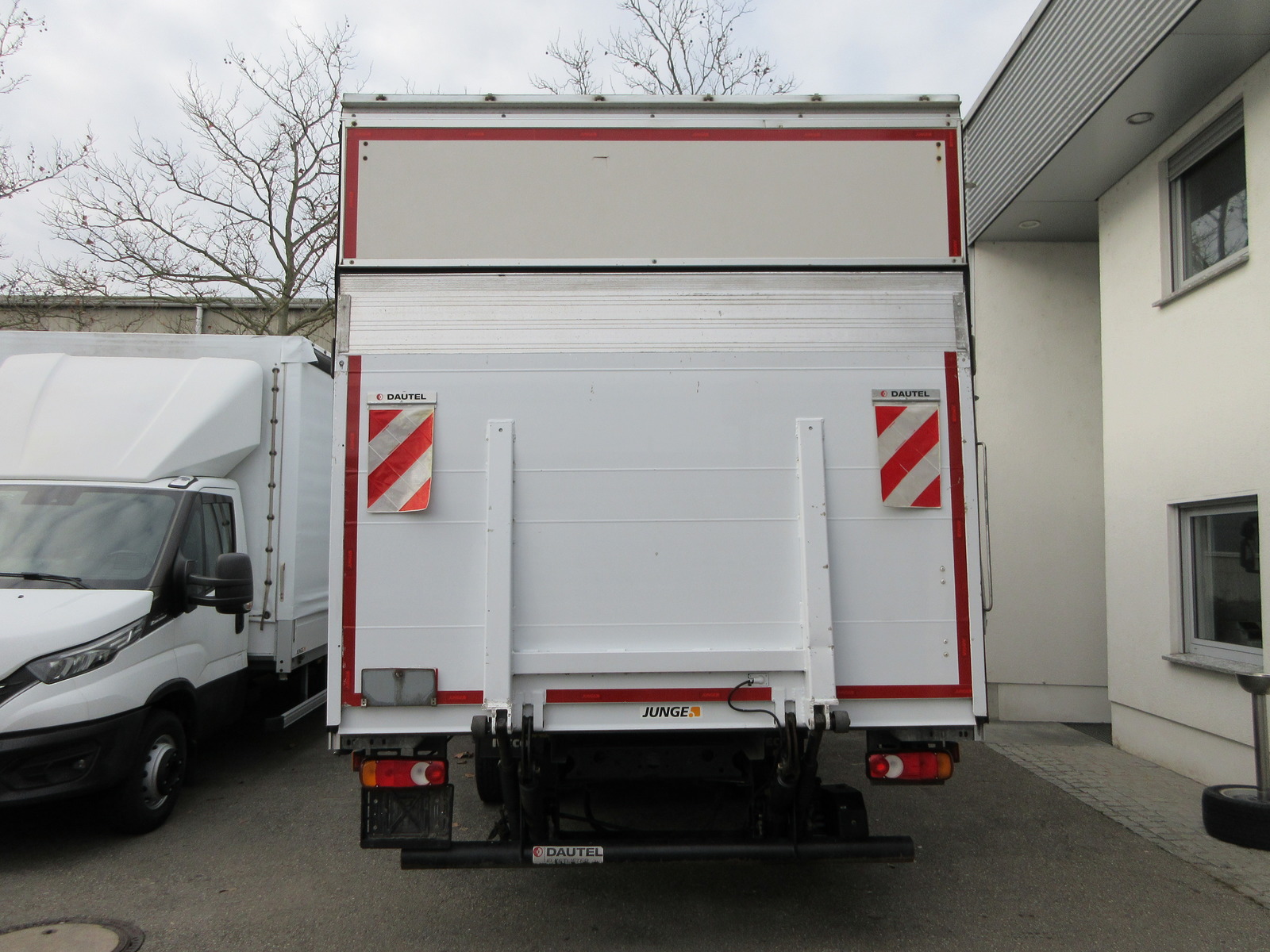 Dautel LBW 1000 kg, Pritsche L= 7,20 m / B= 2,48 m / H= 2,47 m, Nutzlast = 2265 kg, Dachspoiler, 3 Sitzplätze, Schiebeplane in Fahrtrichtung links, |