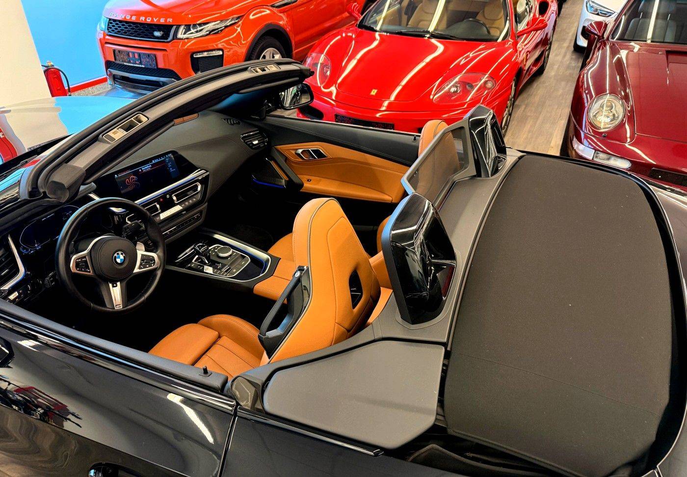 Bitte um Terminabsprache, Wir Finanzieren über die BMW Bank,1 Hand,Deutsches Fahrzeug ,M Sportpaket Unfallfrei ,Buisiness Paket mit Alarmanlage,Lordosenstütze,BMW Live Cocckpit,Lückenlose Historie,Saphiere Schwarz Metallic mit Leder Cognac mit Dekorsteppung,19 Zoll Doppelspeiche in Jet Black,Lenkradheizung,Interieur in Schwarz hochglänzend,Park Distance Control,Harmann Kardon Surround Soundsystem,Individual Hochglanz Shadow Line mit Erweiterten Umfängen, .usw.. Perfekt gepflegtes Fahrzeug ohne Schäden mit Garantie bis 24 Monate möglich Sonderausstattung: Ausstattungs-Paket: Connected Professional, Business-Paket Professional, Fzg. ohne Modell-Schriftzug, Innenausstattung: Interieurleisten, schwarz hochglänzend, Lenkrad heizbar, LM-Felgen vorn/hinten: 9x19 / 10x19 (Doppelspeiche 799 M, Jet Black), Metallic-Lackierung, Sound-System Harman-Kardon Weitere Ausstattung: 3. Bremsleuchte LED, Ablage-Paket, Adaptives Fahrwerk M-Technic, Aerodynamik-Paket M-Technic, Airbag Beifahrerseite abschaltbar, Airbag Fahrer-/Beifahrerseite, Aktive Motorhaube, Ambiente-Beleuchtung, Ausstattungs-Paket: Connected, Außenausstattung: Shadow-Line Hochglanz, Beifahrersitzlehne klappbar, Bordcomputer, Bremsanlage: M Sportbremsen (Bremssättel lackiert), Bremsassistent, DAB-Tuner (Radioempfang digital), Diebstahlsicherung für Räder (Felgenschlösser), Durchladeeinrichtung (Mittelarmlehne hinten), Dynamische Bremsleuchte, Dynamische Tractions Control (DTC), Erste Hilfe-Kasten / Verbandkasten, Exterieurumfänge Ceriumgrau, Fahrassistenz-System: Active Guard (Bremsassistent), Fahrassistenz-System: Fahrerlebnisschalter, Fahrassistenz-System: Frontkollisionswarnung, Freisprecheinrichtung mit USB-Schnittstelle, Fußmatten Velours, Getränkehalter, Heckleuchten LED, Innenbeleuchtungs-Paket, Innenspiegel mit Abblendautomatik, Instrumententafel Sensatec, Isofix-Aufnahmen für Kindersitz an Beifahrersitz, Karosserie: 2-türig, Klimaautomatik 2-Zonen mit autom. Umluft-Control, Kopf-Airbag-System vorn, Leuchtweitenregelung (automatisch), Motor 3,0 Ltr. - 250 kW, Otto-Partikelfilter (OPF), Park-Distance-Control (PDC) vorn und hinten, Parkbremse elektrisch, Personalisierungssystem (Personal Profile), Reifendruck-Kontrollsystem, Reifenpannen-Anzeige, Schadstoffarm nach Abgasnorm Euro 6d, Scheinwerfer LED, Seitenairbag vorn, Service-System: ConnectedDrive Services, Service-System: Intelligenter Notruf inkl. TeleServices, Sitzbezug / Polsterung: Leder- / Alcantara-Kombination Vernasca, Sitzheizung vorn, Sportdifferential, Sportsitze vorn (M-Technic), Start/Stop-Anlage (Funktion), Variable Sportlenkung, Verdeck schwarz, Warndreieck, Windschutz (Cabrio), Überschlag-Schutzsystem (aktiver Überrollbügel) Erleben Sie puren Fahrspaß mit diesem gepflegten BMW Z4 Cabrio aus dem Jahr 2021. Der leistungsstarke 6-Zylinder-Motor mit 340 PS und 2998 ccm Hubraum bietet beeindruckende Fahrleistungen bei gleichzeitiger Einhaltung der Euro-6-Abgasnorm. Das Fahrzeug überzeugt durch seine schwarze Metallic-Lackierung und wurde von nur einem Vorbesitzer gefahren. Die Automatik-Schaltung und der Heckantrieb sorgen für dynamisches Fahrverhalten, während das Start-Stopp-System den Kraftstoffverbrauch optimiert. Der Z4 verfügt über einen lückenlosen Scheckheftnachweis und bietet mit seiner umfangreichen Sicherheitsausstattung wie ABS, ESP und Front-, Seiten- und weiteren Airbags ein hohes Sicherheitsniveau. Im Innenraum erwarten Sie Sportssitze, beheizbare Sitze, Klimaautomatik und Ambientbeleuchtung für höchsten Komfort. Die Ausstattung wird durch ein Lederlenkrad, Freisprecheinrichtung, Tempomat und Isofix-Befestigungen abgerundet. Mit einem Leergewicht von 1630 kg und einer Nutzlast von 305 kg bietet der Z4 trotz seiner kompakten Roadster-Bauweise praktische Alltagstauglichkeit. 340 PS starker 6-Zylinder-Benzinmotor mit Euro-6-Norm, Schwarze Metallic-Lackierung mit nur einem Vorbesitzer, Scheckheftgepflegt mit Garantie, Automatikgetriebe und Heckantrieb für sportliches Fahrgefühl, Umfangreiche Sicherheitsausstattung (ABS, ESP, mehrere Airbags), Sportssitze mit Sitzheizung und Automatikklima, Einparksensoren hinten für leichtes Rangieren, Nichtraucherfahrzeug in deutscher Ausführung, |