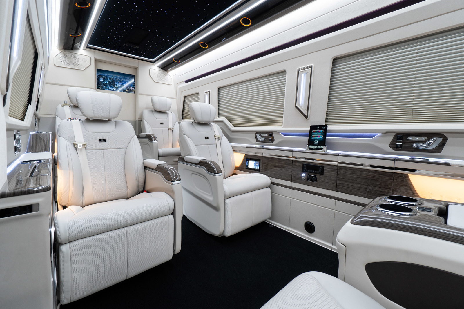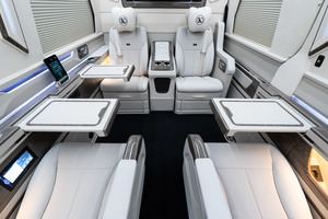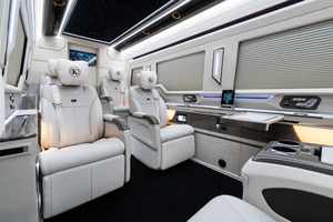 MSE_1-1602 - Covering of the Side Wall MSE_1-1603 - Wood in the VIP area MSE_1-1604 - Electric Tables MSE_1-1605 - Decorative Columns MSE_1-1606 - Opening mechanism for the sliding door integrated in the side panel MSE_1-1607 - Electric blinds for the side windows MSE_1-1608 - RGB Ambient Lighting MSE_1-1609 - USB Ports MSE_1-1610 - Connections
