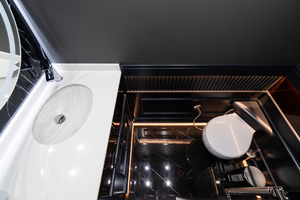 | 7-miejscowy/3. rząd siedzeń, Schlafsitze, WC, elektryczne sterowanie kanapy tylnej, elektryczne sterowanie przednich siedzeń, elektryczne sterowanie siedzenia kierowcy, kierownica skórzana, podłokietnik środkowy, podparcie odcinka lędźwiowego kręgosłupa, regulacja wysokości siedzenia, szlachetny gatunek drewna, tapicerka siedzeń: skóra, wkładki ze szlachetnych gatunków drewna |