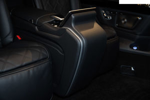 Diese exquisiten MAYBACH Sitze sind auf einer innovativen, beweglichen Konstruktion auf Schienen montiert. Diese Flexibilität erlaubt es Ihnen, den Sitzkomfort nach Ihren Bedürfnissen anzupassen. Sie können die Sitze nach vorne bewegen, um mehr Platz im Kofferraum zu schaffen, ideal für zusätzliches Gepäck oder größere Transportanforderungen. Alternativ dazu können die Sitze nach hinten bewegt werden, um im VIP-Raum des Fahrzeugs mehr Raum und Privatsphäre zu schaffen.