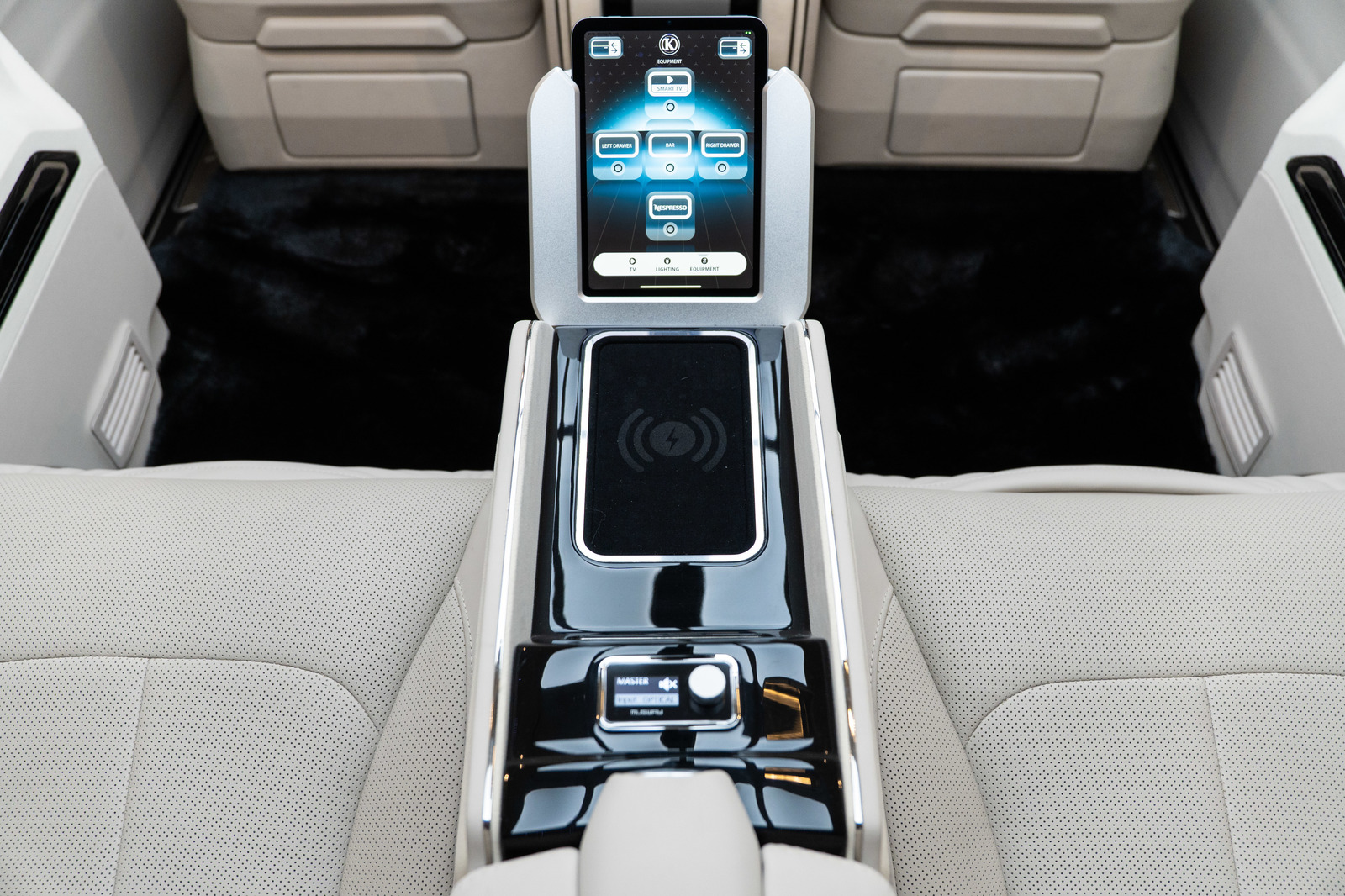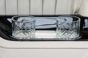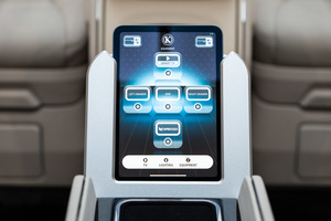 • Trennt den VIP-Bereich vom Fahrerbereich mit einem Mechanismus, der das TV-Gerät auf- und abfährt