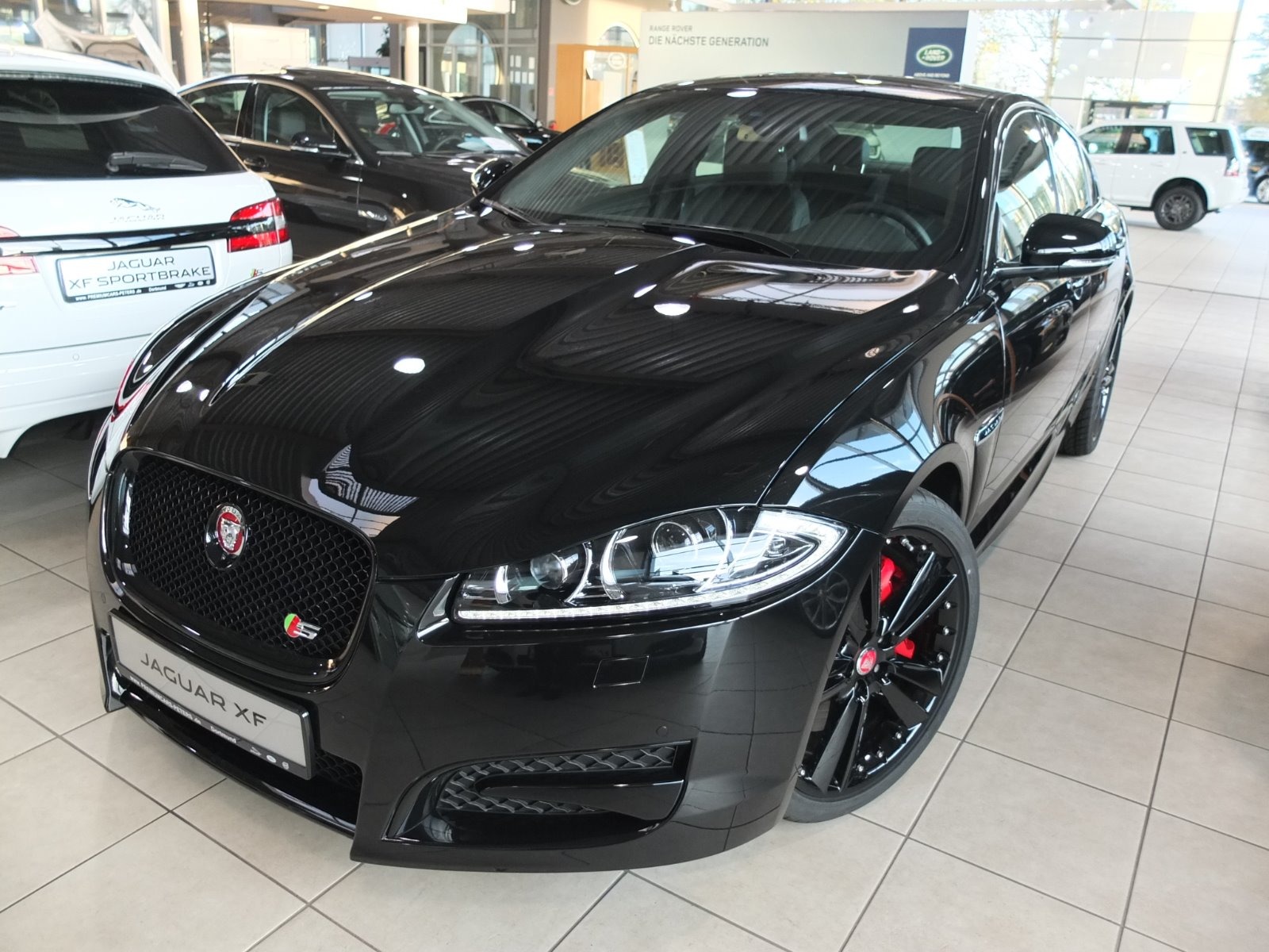 Ehemaliger Listenneupreis: 80.885,- Euro Extras ab Werk: Metallic-Lackierung, Adaptives Kurvenlicht mit schwenkbaren Scheinwerfern und Abbiegelicht, Beheizbare Frontscheibe mit automatischer Abschaltung, Einparkhilfe vorn und hinten mit visueller Darstellung auf dem Touchscreen-Display und Rückfahrkamera, Elektrisches Glas-Schiebe-Hub-Dach mit One-Touch-Funktion, Platzsparendes Leichtmetall-Reserverad, Rote Bremssättel mit Jaguar Schriftzug, Warnsystem Toter Winkel, Automatische Umluftfunktion, Beheizbares Leder-Lenkrad, Dachverkleidung in Premium-Velours in Jet, Keyless Entry, Rücksitze im Verhältnis 60:40 getrennt umklappbar, Bluetooth Konnektivität, DAB-Radioempfänger (Digital Audio Broadcasting), Festplatten-Navigationssystem mit DVD-Player vorn und virtuellem CD-Wechsler, Interaktive Sprachsteuerung, Meridian 380-Watt-Premium-Klangsystem mit CD- und DVD-Player, Aerodynamic- mit Black-Pack mit umgestalteter Heckschürze, Spiegel-Paket, Sport-Interieur-Paket mit Soft-Grain-Leder, Armaturentafeloberseite und Türverkleidungen in Soft-Grain-Leder mit Kontrastnähten, Fußmatten vorn und hinten, Paneele in Pianolack Schwarz, Leichtmetallfelgen 20-Zoll Design Kalimnos mit glänzend schwarzer Oberfläche, |