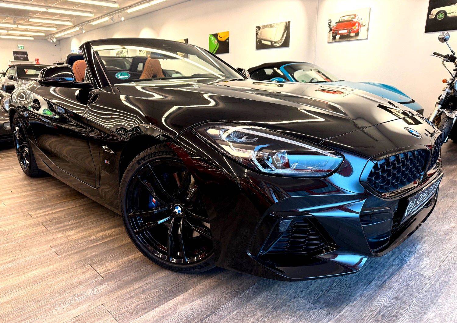 Bitte um Terminabsprache, Wir Finanzieren über die BMW Bank,1 Hand,Deutsches Fahrzeug ,M Sportpaket Unfallfrei ,Buisiness Paket mit Alarmanlage,Lordosenstütze,BMW Live Cocckpit,Lückenlose Historie,Saphiere Schwarz Metallic mit Leder Cognac mit Dekorsteppung,19 Zoll Doppelspeiche in Jet Black,Lenkradheizung,Interieur in Schwarz hochglänzend,Park Distance Control,Harmann Kardon Surround Soundsystem,Individual Hochglanz Shadow Line mit Erweiterten Umfängen, .usw.. Perfekt gepflegtes Fahrzeug ohne Schäden mit Garantie bis 24 Monate möglich Sonderausstattung: Ausstattungs-Paket: Connected Professional, Business-Paket Professional, Fzg. ohne Modell-Schriftzug, Innenausstattung: Interieurleisten, schwarz hochglänzend, Lenkrad heizbar, LM-Felgen vorn/hinten: 9x19 / 10x19 (Doppelspeiche 799 M, Jet Black), Metallic-Lackierung, Sound-System Harman-Kardon Weitere Ausstattung: 3. Bremsleuchte LED, Ablage-Paket, Adaptives Fahrwerk M-Technic, Aerodynamik-Paket M-Technic, Airbag Beifahrerseite abschaltbar, Airbag Fahrer-/Beifahrerseite, Aktive Motorhaube, Ambiente-Beleuchtung, Ausstattungs-Paket: Connected, Außenausstattung: Shadow-Line Hochglanz, Beifahrersitzlehne klappbar, Bordcomputer, Bremsanlage: M Sportbremsen (Bremssättel lackiert), Bremsassistent, DAB-Tuner (Radioempfang digital), Diebstahlsicherung für Räder (Felgenschlösser), Durchladeeinrichtung (Mittelarmlehne hinten), Dynamische Bremsleuchte, Dynamische Tractions Control (DTC), Erste Hilfe-Kasten / Verbandkasten, Exterieurumfänge Ceriumgrau, Fahrassistenz-System: Active Guard (Bremsassistent), Fahrassistenz-System: Fahrerlebnisschalter, Fahrassistenz-System: Frontkollisionswarnung, Freisprecheinrichtung mit USB-Schnittstelle, Fußmatten Velours, Getränkehalter, Heckleuchten LED, Innenbeleuchtungs-Paket, Innenspiegel mit Abblendautomatik, Instrumententafel Sensatec, Isofix-Aufnahmen für Kindersitz an Beifahrersitz, Karosserie: 2-türig, Klimaautomatik 2-Zonen mit autom. Umluft-Control, Kopf-Airbag-System vorn, Leuchtweitenregelung (automatisch), Motor 3,0 Ltr. - 250 kW, Otto-Partikelfilter (OPF), Park-Distance-Control (PDC) vorn und hinten, Parkbremse elektrisch, Personalisierungssystem (Personal Profile), Reifendruck-Kontrollsystem, Reifenpannen-Anzeige, Schadstoffarm nach Abgasnorm Euro 6d, Scheinwerfer LED, Seitenairbag vorn, Service-System: ConnectedDrive Services, Service-System: Intelligenter Notruf inkl. TeleServices, Sitzbezug / Polsterung: Leder- / Alcantara-Kombination Vernasca, Sitzheizung vorn, Sportdifferential, Sportsitze vorn (M-Technic), Start/Stop-Anlage (Funktion), Variable Sportlenkung, Verdeck schwarz, Warndreieck, Windschutz (Cabrio), Überschlag-Schutzsystem (aktiver Überrollbügel) Erleben Sie puren Fahrspaß mit diesem gepflegten BMW Z4 Cabrio aus dem Jahr 2021. Der leistungsstarke 6-Zylinder-Motor mit 340 PS und 2998 ccm Hubraum bietet beeindruckende Fahrleistungen bei gleichzeitiger Einhaltung der Euro-6-Abgasnorm. Das Fahrzeug überzeugt durch seine schwarze Metallic-Lackierung und wurde von nur einem Vorbesitzer gefahren. Die Automatik-Schaltung und der Heckantrieb sorgen für dynamisches Fahrverhalten, während das Start-Stopp-System den Kraftstoffverbrauch optimiert. Der Z4 verfügt über einen lückenlosen Scheckheftnachweis und bietet mit seiner umfangreichen Sicherheitsausstattung wie ABS, ESP und Front-, Seiten- und weiteren Airbags ein hohes Sicherheitsniveau. Im Innenraum erwarten Sie Sportssitze, beheizbare Sitze, Klimaautomatik und Ambientbeleuchtung für höchsten Komfort. Die Ausstattung wird durch ein Lederlenkrad, Freisprecheinrichtung, Tempomat und Isofix-Befestigungen abgerundet. Mit einem Leergewicht von 1630 kg und einer Nutzlast von 305 kg bietet der Z4 trotz seiner kompakten Roadster-Bauweise praktische Alltagstauglichkeit. 340 PS starker 6-Zylinder-Benzinmotor mit Euro-6-Norm, Schwarze Metallic-Lackierung mit nur einem Vorbesitzer, Scheckheftgepflegt mit Garantie, Automatikgetriebe und Heckantrieb für sportliches Fahrgefühl, Umfangreiche Sicherheitsausstattung (ABS, ESP, mehrere Airbags), Sportssitze mit Sitzheizung und Automatikklima, Einparksensoren hinten für leichtes Rangieren, Nichtraucherfahrzeug in deutscher Ausführung, |
