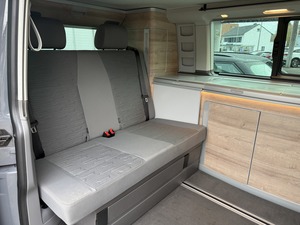 Sonderausstattung: Allwetter-/ Ganzjahresreifen, Aufstelldach manuell betätigt mit Bugfenster und Frontöffnung, Faltenbalg grau, Ausstattungs-Paket Licht + Sicht, Fahrassistenz-System: Einparkhilfe vorn und hinten, Geschwindigkeits-Regelanlage (Tempomat) inkl. Geschwindigkeits-Begrenzeranlage, Markise seitlich, Beifahrerseite (Gehäuse und Markisenleisten schwarz), Winter-Paket Plus Weitere Ausstattung: Abdeckung Schiebetürleiste, Abfallbehälter, Airbag Beifahrer abschaltbar, Airbag Fahrer-/Beifahrerseite, Anschluss für Außendusche, Antriebs-Schlupfregelung (ASR), Anzeige für Waschwasserstand, Armaturentafel Komfort, Audiosystem Composition Colour (Radio/CD-Player, MP3-Wiedergabefunktion), Außenspiegel elektr. verstell- und heizbar, Außenspiegel konvex, links, Außenspiegel konvex, rechts, Außenspiegel und Türgriffe außen in Wagenfarbe, Befestigungsschienen für Dachträger, Bettverlängerung mit Polsterauflage (Komfort), Bodenbelag im Fahrerhaus: Velours-Vlies, Bodenbelag im Lade-/Fahrgastraum Kunststoff, Bordwerkzeug und Wagenheber, Campingtisch, Dachbett, Einbauschränke Bright Oak, Fahrassistenz-System: Bremsassistent (HBA), Fahrassistenz-System: Multikollisionsbremse (Multi Collision Brake), Fahrassistenz-System: Seitenwind-Assistent, Fenster im Lade-/FG-Raum: - feststehend, vorn und hinten rechts, Fenster im Lade-/FG-Raum: - schiebbar vorn, feststehend hinten links, Funkschlüssel (2) klappbar, Haltegriffe A-Säulen, Handschuhfach abschließbar, Handschuhfach beleuchtet, Heckklappe mit Verglasung, Heckscheibe heizbar, mit Wischanlage, Innenausstattung: Dekoreinlagen Bright Brushed Grey, Innenbeleuchtung Camper (inkl. Beleuchtung Aufstelldach / Heckklappe), Innenleuchten im Lade-/FG-Raum: Trittstufenleuchten, Innenraumfilter: Pollenfilter, Isofix-Aufnahmen für Kindersitz an Rücksitz, Karosserie/Aufbau: Motor Caravan, Kompressor-Kühlschrank, Kraftstofftank: 70 Ltr., Kühlergrill mit Chromleisten, Lenksäule (Lenkrad) verstellbar, LM-Felgen, Markisenleisten schwarz, Mobiltelefon Schnittstelle Bluetooth, Motor 2,0 Ltr. - 110 kW TDI, Multifunktionsanzeige Premium (Farbdisplay), Multimedia-Schnittstelle 2 x USB (Typ C) vorn, Notrufsystem, Radioempfang digital (DAB+), Radstand 3000 mm, Raucher-Paket, Reifen-Reparaturkit, Reifenkontroll-Anzeige, Schadstoffarm nach Abgasnorm Euro 6d, Scheibenwischer mit Intervallschaltung, regulierbar, Scheinwerfer LED, Schiebetür Lade-/Fahrgastraum rechts, SCR-System (AdBlue-Technologie), Seitenairbag / Kopfairbag (Curtain-Airbag) vorn, Servolenkung elektro-mechanisch, Sitzbezug / Polsterung: Stoff, Sitze im Fahrerhaus: Beifahrersitz mit Lendenwirbelstütze, drehbar, Sitze im Fahrerhaus: Fahrersitz mit Lendenwirbelstütze, drehbar, Sitze im Fahrerhaus: Lendenwirbelstützen Fahrer- und Beifahrersitz, Sitze im Lade-/FG-Raum: 2.Reihe, 2er-Sitzbank, verschiebbar und ausklappbar, Sonnenblenden mit Spiegel (beleuchtet), Sonnenschutzrollo im Fahrgastraum, Start/Stop-Anlage Motor, Steckdose 230V (mit Einspeisung für Batterieaufladung), Steckdose 230V im Fahrerhaus, Steckdosen (12V-Anschluß) im Fahrerhaus (2 Stück), Stoßfänger in Wagenfarbe, Verglasung hinten abgedunkelt, Warnanlage für Sicherheitsgurte (Fahrer-/Beifahrerseite), Zentralverriegelung mit Fernbedienung und Innenbetätigung, Zuheizer, Zul. Gesamtgewicht 3,00 t