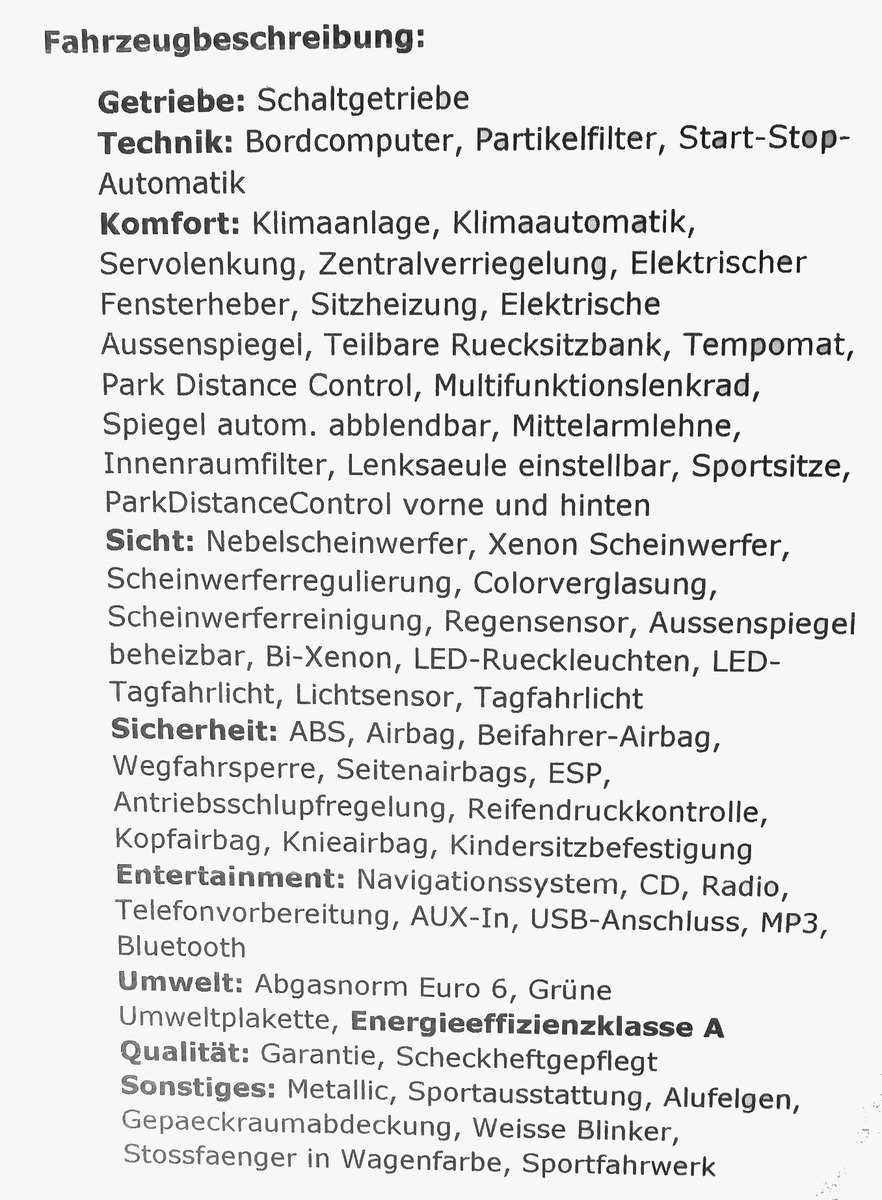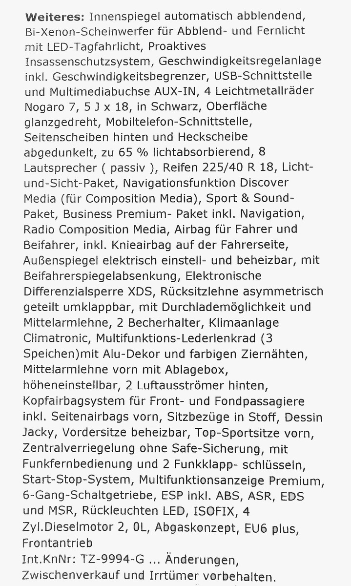 Insgesamt ein sauberer und gepflegter Garagen- und Nichtraucherwagen. Fährt sich wunderbar und sieht auch super aus. Inserat und Verkauf im Auftrag des Eigentümers. Für weitere Fragen und Informationen erreichen Sie unseren Verkäufer jederzeit auch über WHATS APP oder via Direktanruf unter: 0173-9241007. - Finanzierung auch ohne Anzahlung mit individuellen Laufzeiten und Raten möglich - Gerne nehmen wir Ihr derzeitiges Fahrzeug in Zahlung und melden es kostenlos für Sie ab - Gebrauchtwagengarantie 12 oder 24 Monate gegen Aufpreis möglich - Ersparen Sie sich den Zulassungsstress. Unser Zulassungsdienst erledigt alle Formalitäten blitzschnell und absolut stressfrei für Sie - Keine Gewähr für Ausstattungsdetails da Irrtümer möglich. Änderungen und Zwischenverkauf vorbehalten Öffnungszeiten: Montag-Freitag 10.00-19.00 Uhr, samstags 10.00-16.00 Uhr. Für Besichtigungen und Probefahrten bitte vorab Termin absprechen. Telefonisch sind wir auch ausserhalb der Öffnungszeiten jederzeit erreichbar. Ihre Anfragen beantworten wir in der Regel noch am selben Tag. |