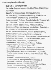 | дисковый тормозной механизм, догрузка ведущих колес (ASR), контроль силы тяги, противоблокировочное устройство (ABS), рулевой механизм с усилителем, элекронная стабилиз. прогр. (ESP), Partikelfilter |