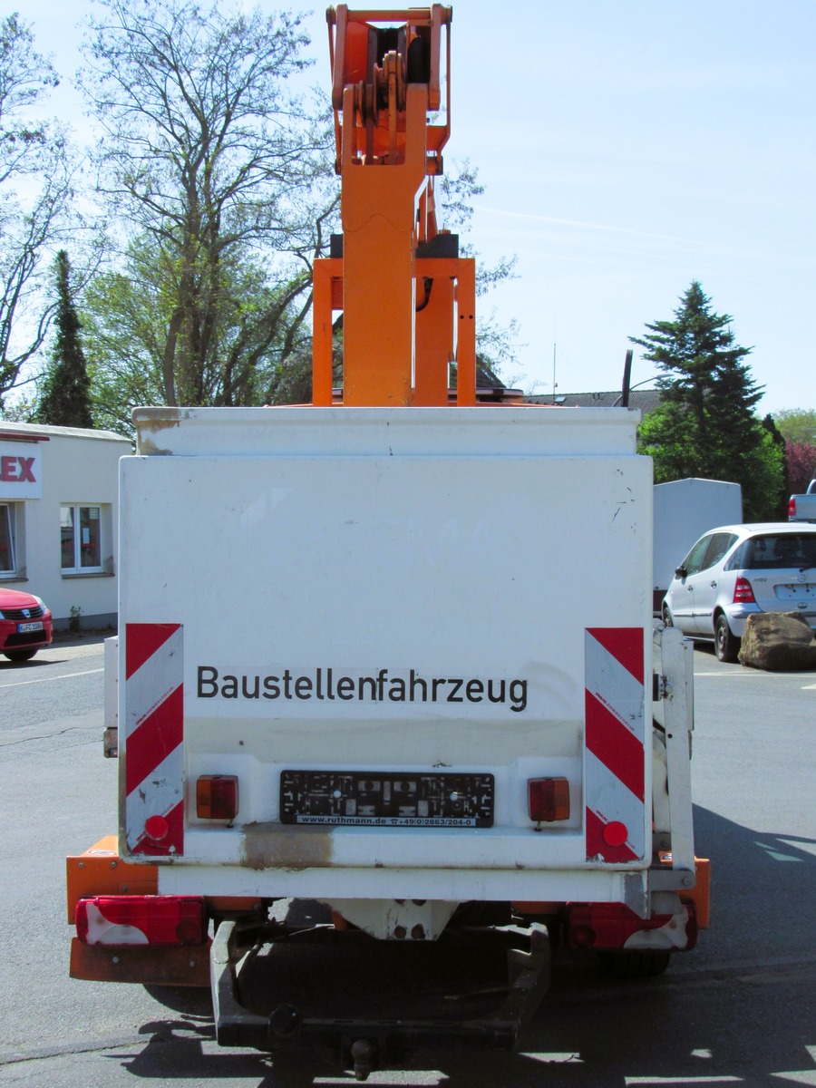 TÜV und UVV-Prüfung NEU!!!, Gesamt-Gewicht: 3500kg, Anhängerkupplung 2000kg, Ruthmann-Steiger K110 Hubarbeitsbühne, Arbeitshöhe: 11m, Ladeflächenlänge: 1.3m, Ladeflächenbreite: 1m, Reichweite: 6.6m , Personen: 2, Nutzlast: 200kg, Fahrtenschreiber, Pioneer Radio ausfahrbar, el.Fensterheber, el.Außenspiegel, 2-Sitzer, Mittelarmlehne, im Kundenauftrag, |
