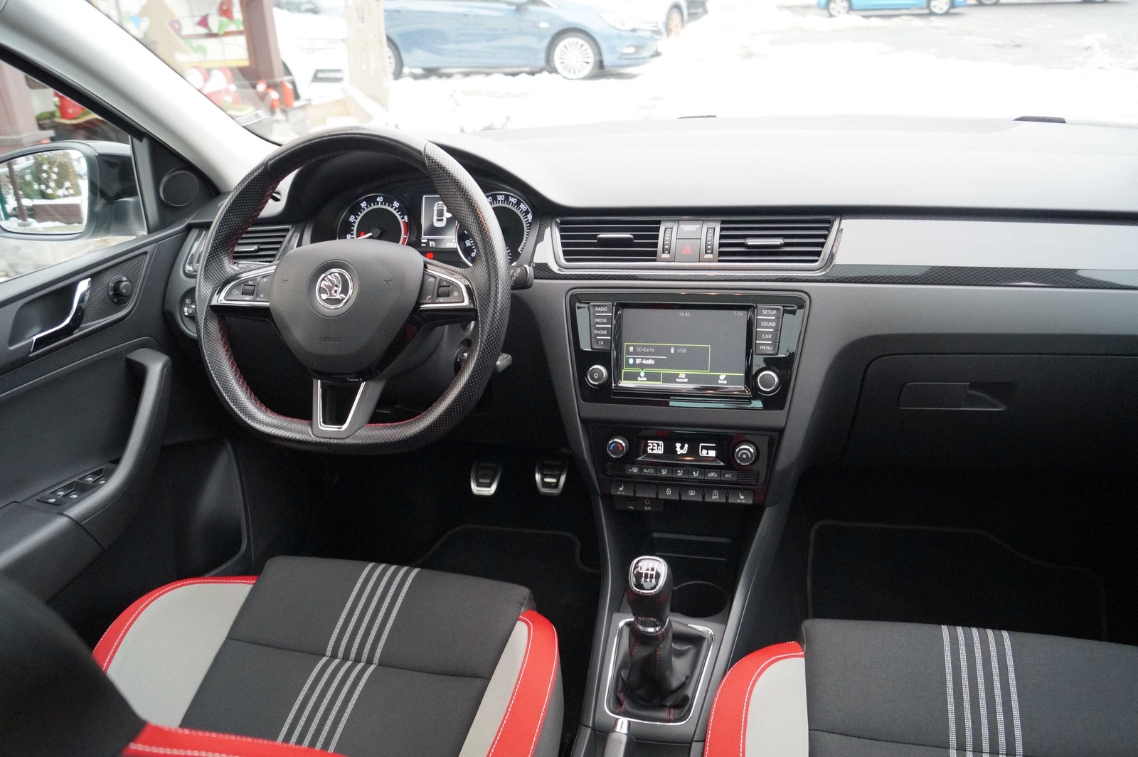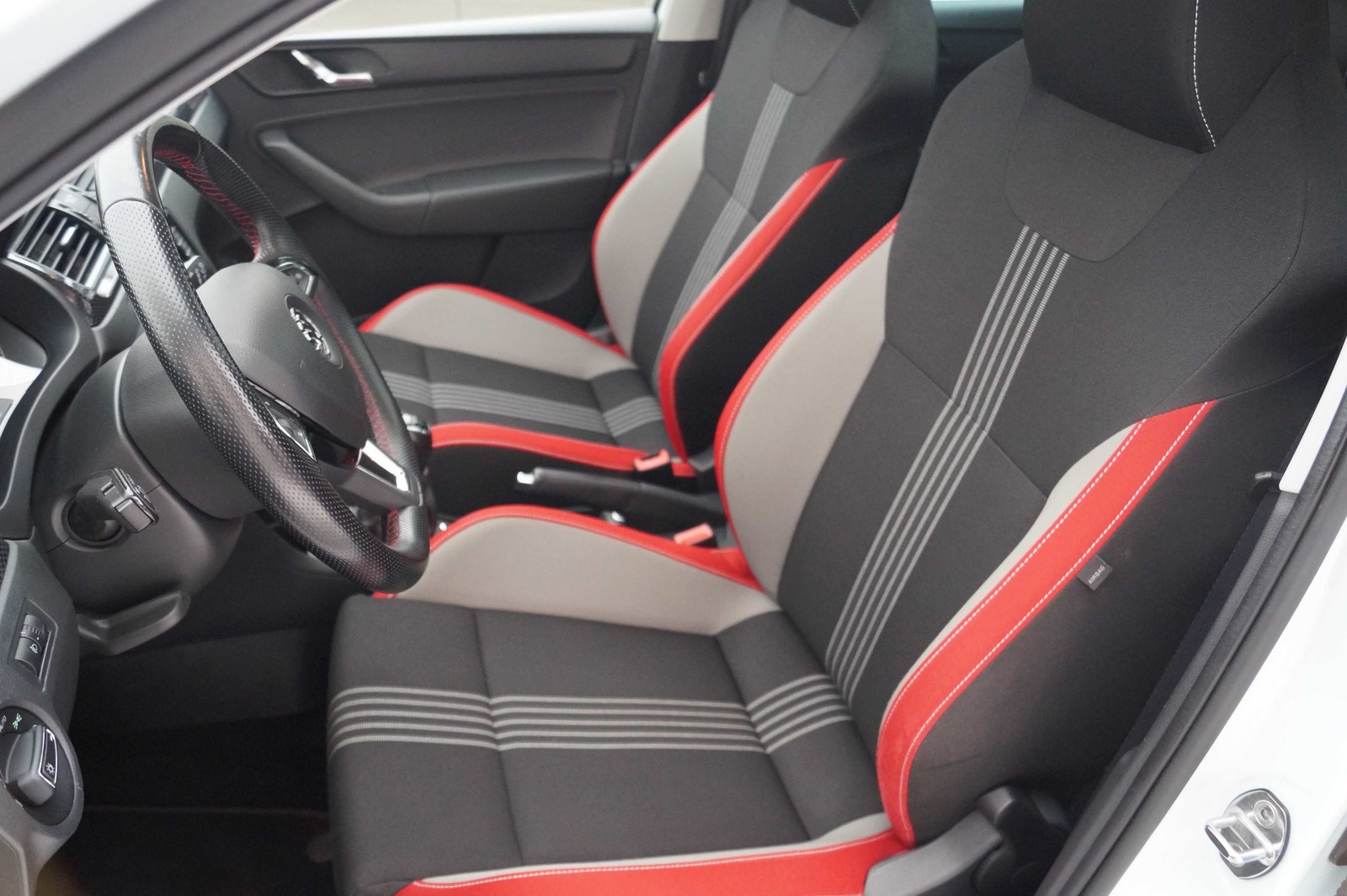 | atrama alkūnei per vidurį, odinė pavarų perjungimo svirties rankenėlė, odinis vairaratis, perskirtas sėdynių suolas, sėdynių apmušalai: medžiaginiai, sėdynių aukščio reguliavimas, sportinės sėdynės/ kaušo formos sėdynės |