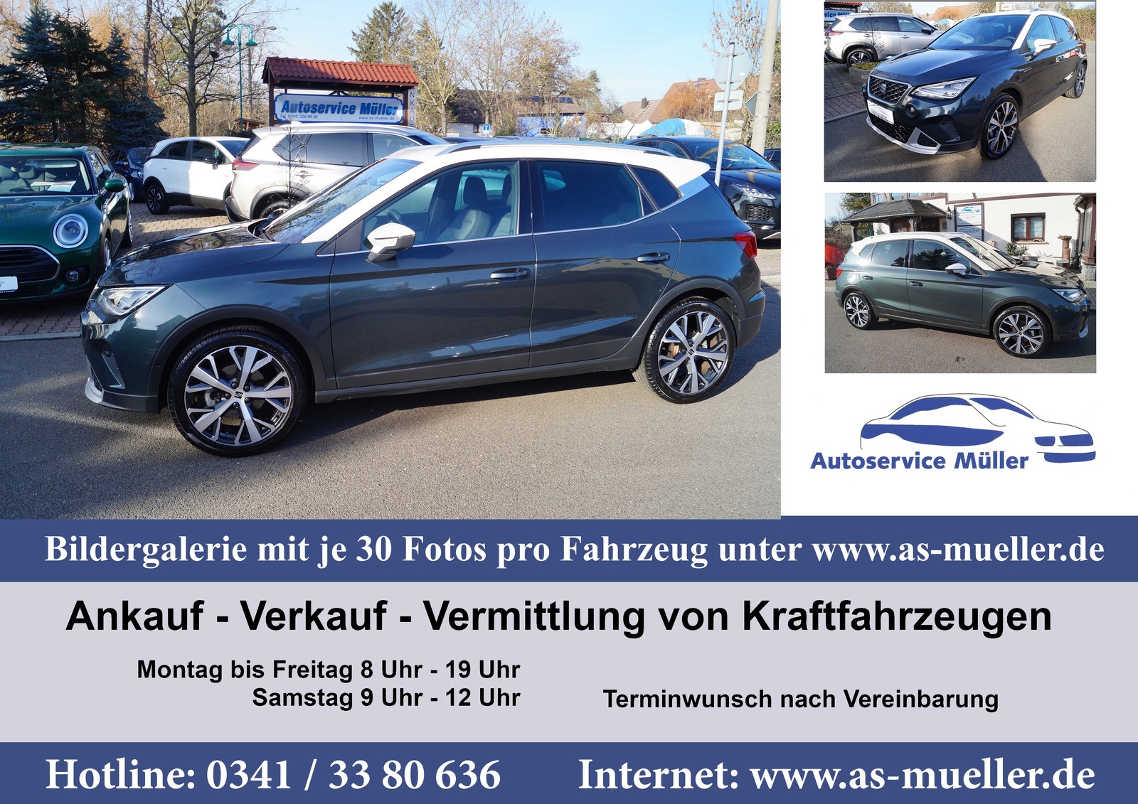 Bei Fragen zum Fahrzeug usw. telefonische Kontaktaufnahme bevorzugt. Bei Interesse am Fahrzeug vereinbaren Sie bitte einen Termin zu einer Besichtigung. Terminvereinbarung für Beratung und Probefahrt = kürzere Wartezeiten:, Zeit ist kostbar und diese sollten Sie nicht mit Warten verbringen. Deshalb bitten wir Sie um eine telefonische Terminvereinbarung für eine Beratung oder zur Probefahrt., --- Super Fotogalerie und Informationen zur Firma finden Sie direkt unter --- =========================================================== www.as-mueller.de Kurzzeitkennzeichen Nummer zur Überführung ihres neuen Fahrzeuges können gern nach Absprache von uns bereit gestellt werden. Es können auch individuelle Termine außerhalb der Öffnungszeiten bei „ernsthaftem Kaufinteresse“ vereinbart werden. Außerhalb der Öffnungszeiten unter Mobil 0172/5102340 gern auch per whatsapp - Kfz Meisterbetrieb seit 1990/ 36 Jahre - Garantie bis 24 Monate als Anschlussgarantie möglich- Garantie Bedingungen laut Garantie Gesellschaft und Garantiepass – bitte Fragen Sie nach, wir informieren Sie gern. - Finanzierung des Fahrzeuges auch ohne Anzahlung/ Inzahlungnahme Fahrzeug - Gebrauchtwagen Gütesiegel auf Anfrage ________________________________________________________________________________________ - Versehentliche Irrtümer / Eingabefehler / Änderungen und Zwischenverkauf vorbehalten. Trotz sorgfältiger Überprüfung all unserer Preisauszeichnung, kommt es immer wieder vor, dass sich Fehler einschleichen. Teilweise werden diese durch Übertragungsfehler in den Systemen der verschiedenen Plattformanbieter verursacht. Aber auch Irrtümer unsererseits sind nicht auszuschließen. Daher möchten wir Sie darauf hinweisen, dass sich alle Angaben ohne Gewähr verstehen und keinen Rechtsanspruch darstellen. Legen Sie besonderen Wert auf ein bestimmtes Ausstattungsmerkmal unseres Inserats, so teilen Sie es bei Vertragsabschluss gerne mit.
