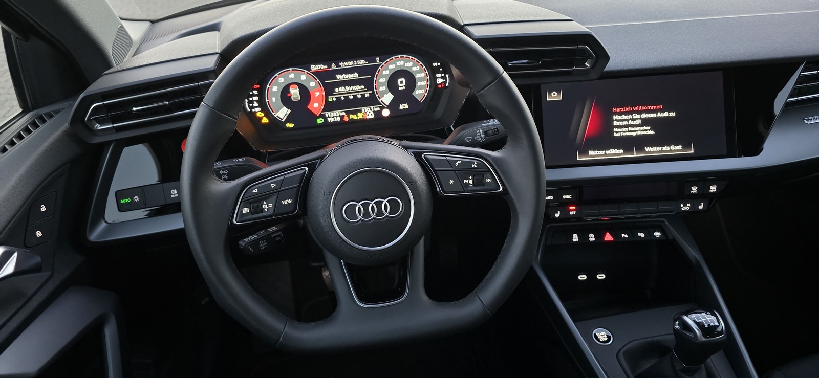 | Lederlenkrad, Mittelarmlehne, Optik: Alu, Sitzbank geteilt, Stoff |