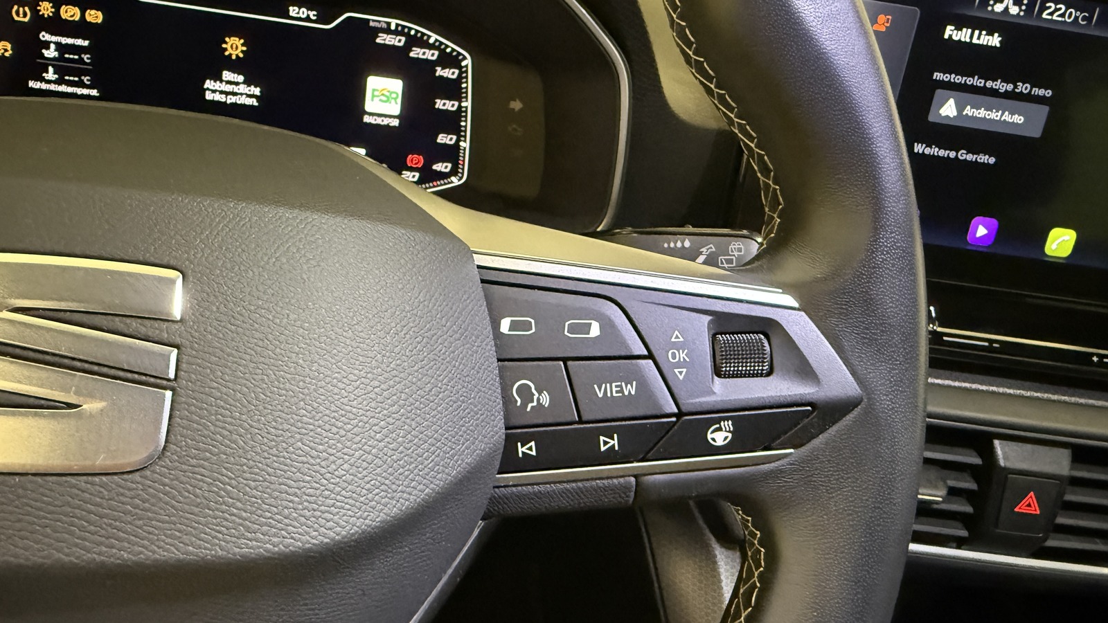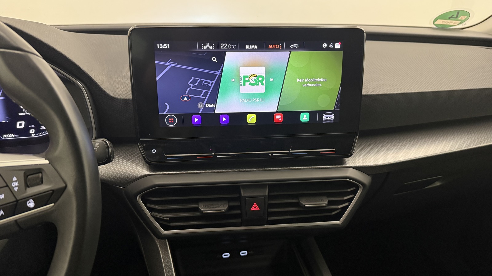 | Ar ādu apdarināta pārnesumu svira, Ar ādu apdarināts stūres rats, Dalīts sēdeklis, Mugurkaula atbalsts, Sēdekļu augstuma regulēšana, Sēdekļu pārvalks: audums |